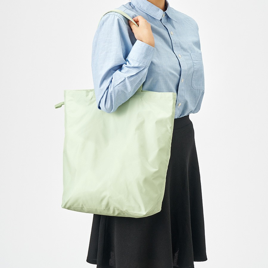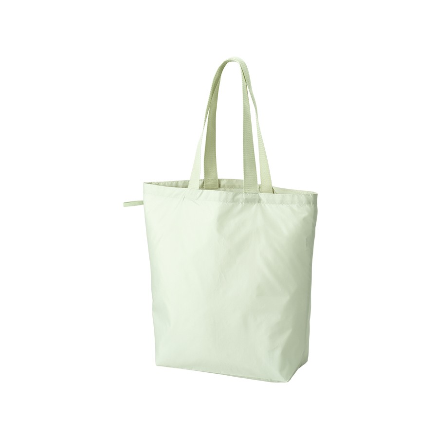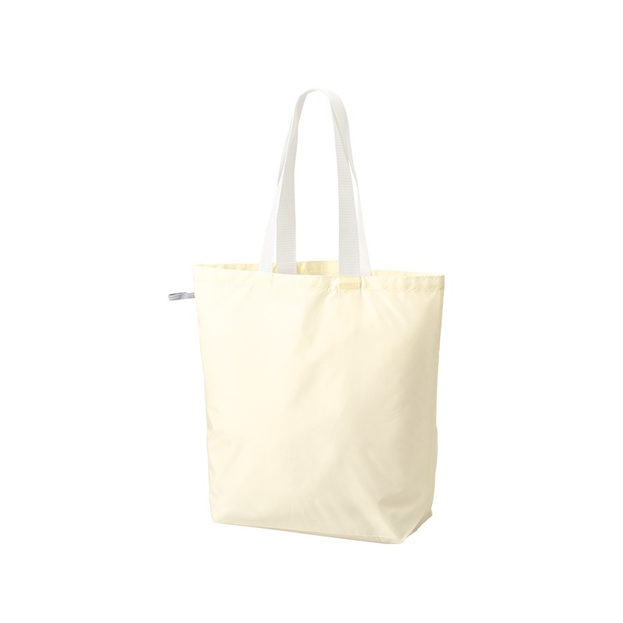 上質な光沢感としなやかでさらっとした手触りが特徴のファインライトポリを使用した舟形バッグです。超薄手・超軽量ながら、大容量サイズなのでお買い物にも最適です。持ち手部分にはテープハンドルを使用し、持ちやすさはもちろん見た目のアクセントにもなります。またゴムでとめていただくことで、コンパクトに畳むことができ持ち歩きにもぴったりです。単色印刷はもちろん、フルカラー印刷にも対応しているのでお店やイベントロゴ、キャラクターなどもきれいに印刷ができます。