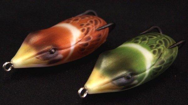 フローティング・ベジテーションを駆け回る、ズル賢い「狐」をイメージ。鼻から頬にかけてスリムにした事により高低差のあるカバーをすり抜けやすく、後方にかけてのフラットベリーがクイックターンを演出しやすいので、アングラーの意のままに変幻自在なアクションを生み出せる秀作です。僅かなポイントへのズレが、大きな差となるフロッグゲーム。 フィネスのフロッグデザインに共通する“ティアドロップテール”は飛行姿勢が美しく、コントロール性の高い安定したロングディスタンスを可能としています。 ヘビーカバーエリアへのアングラーの集中化が特に顕著となった近年、専用タックルによるライトカバーエリアを“選択”するシニアアングラーにも、このフロッグのライトウェイトチューンは強力な武器となるでしょう。 がまかつ社製バーブレスダブルフック(超極太軸を採用&FNSコート)を搭載し、大物への配慮も万全。90cmを超える“モンスター”との遭遇率が極めて高い・・という事実が、このフロッグの人気の秘密でもあります。