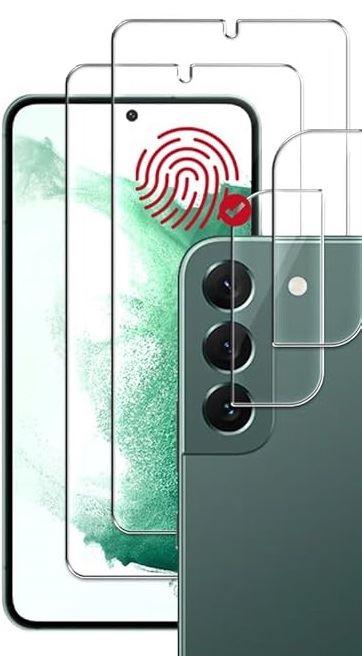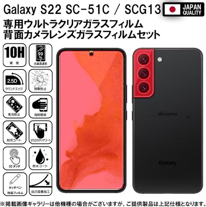 「対応機種及び仕様」*指紋認証対応版(本製品使用開始時は必ずガラスフィルムを貼ってから再度指紋登録をお願いいたします) ギャラクシー Galaxy S22 SC-51C / SCG13 クリアガラスフィルム2枚+クリアカメラレンズ保護ガラスフィルム2枚セット。