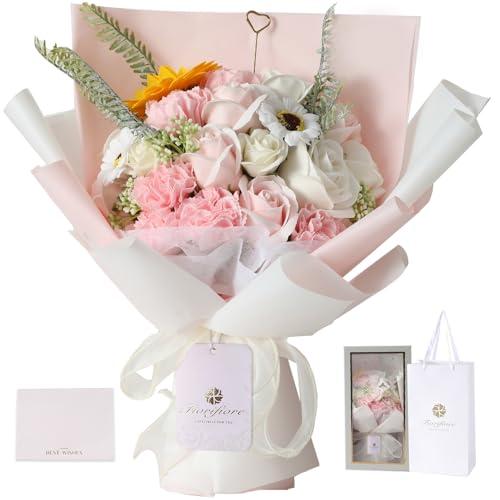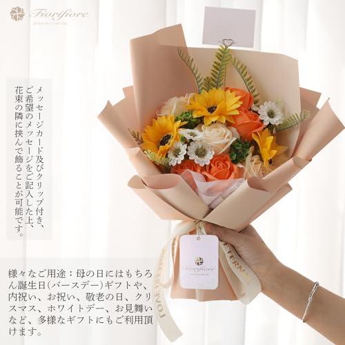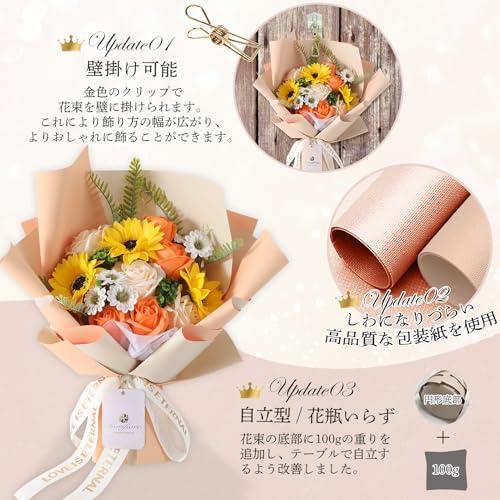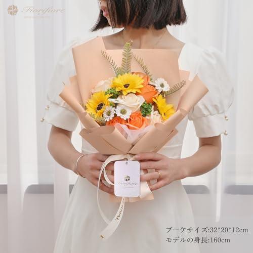 ①ソープフラワーおすすめの理由:1、手入れ不要!枯れません。2、プリザより、ボリュームたっぷり。3、鮮やかな色彩が楽しめます。4、石けんの優しい香りに癒されます。5、花粉症心配なし、花粉が無いのでアレルギーの心配がありません。 ②まるで本物のお花のような:お花の大きさは生花と同じで、とてもリアル、さらに石鹸で作られているので、ふわっと優しい香りを、お楽しみいただけます、もちろん、枯れる事がありません、眼で見ての楽しみ、香りの楽しみの他。 ③BOX入りソープフラワー:すぐにお渡しできるよう専用のボックスをお付届け致します。ギフトとしての見栄えもばっちり。バックサイズ:約38x 20 x 12cm、花束サイズ:約32×16×9cm、総重量:約550g。無料でメッセージカード付き。伝えたい気持ちに合わせてご自由にお書きいただけます。 ④取扱方法: ※こちらは観賞用のソープフラワーですので石鹸としてはお使いいただけません。 ※直射日光はお避けてください。変色したり、色抜けしたりします。 ※水に濡れるだけで簡単に花びら同士がくっつきますので、水気にはご注意ください。 ⑤花粉症心配なし:花粉が無いのでアレルギーの心配がありません・また生花のようにお水をあげたり世話の手間がかかりませんのでお見舞いなどにも安心。