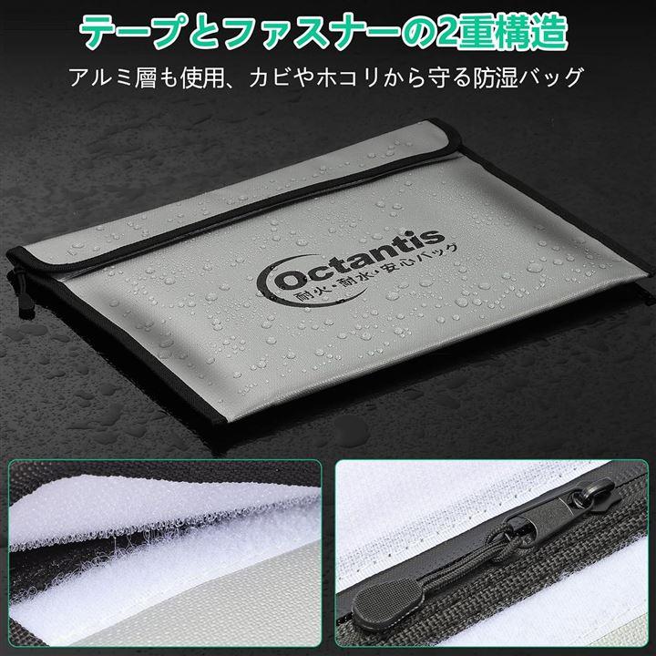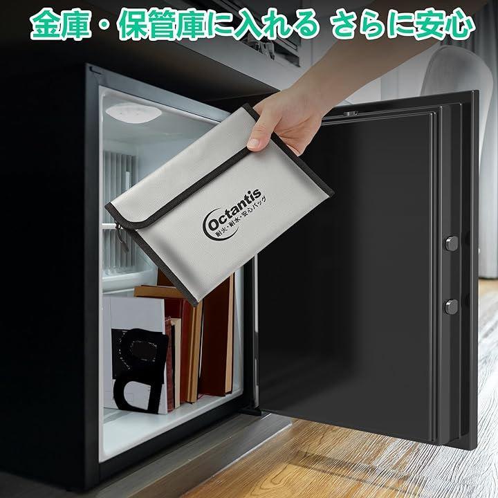 更に、耐火バッグの内部はアルミ箔防火素材を使用しており、防湿バッグとしても、重要書類を保管、貴重品も火事や水害から守ってくれる 。