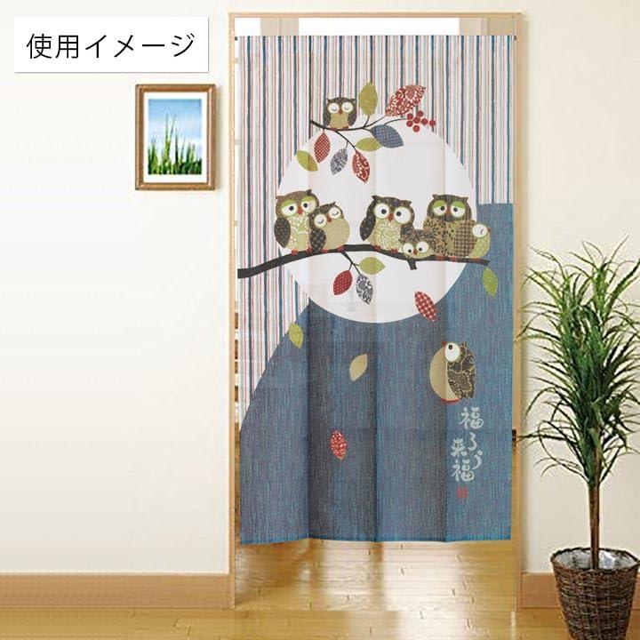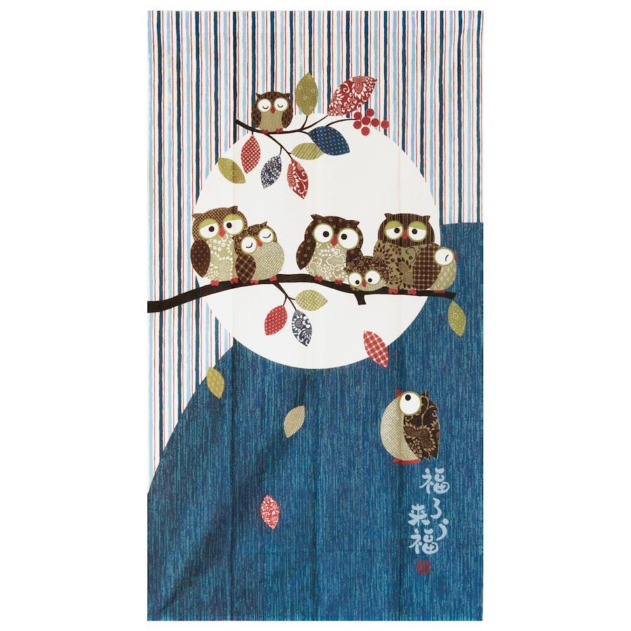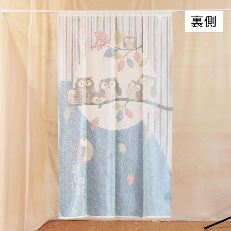防炎のれん約82x150cm 防炎ふくろう ブルーmatu-14260