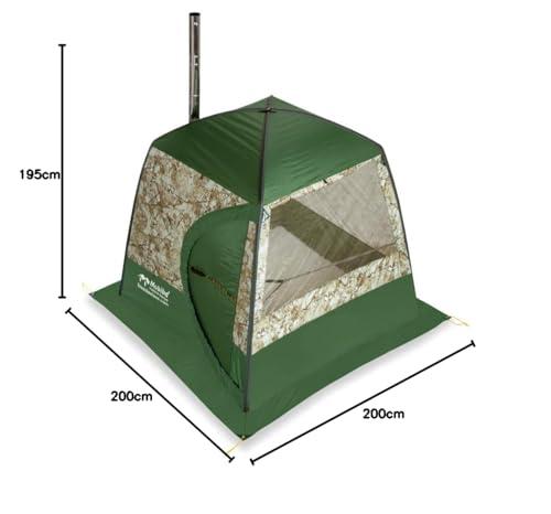 窓寸法/ W110×H87cm重量:テント/7.6kg、ストーブ/16.8kg定員:3~4名燃料:薪(最大長さ 40cm)最高室温:100度