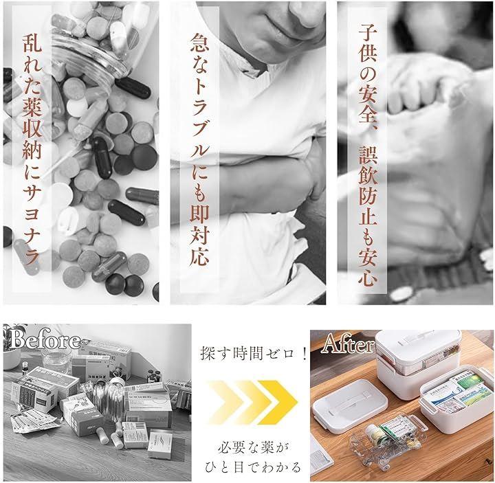 「多機能な収納ボックス」医薬品だけでなく、化粧品、文房具、おもちゃ、小さな部品など多用途に活用可能。