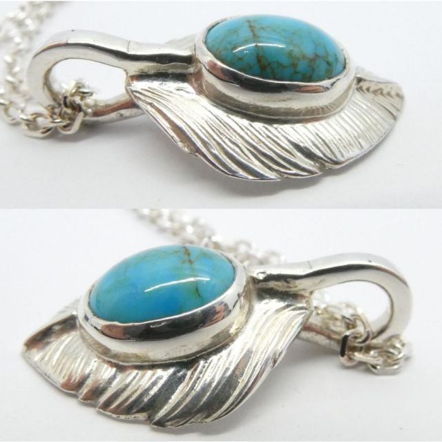 FIRST ARROW's 925 ターコイズハートフェザー チェーン込み 袋付 全長約50cm ネックレス