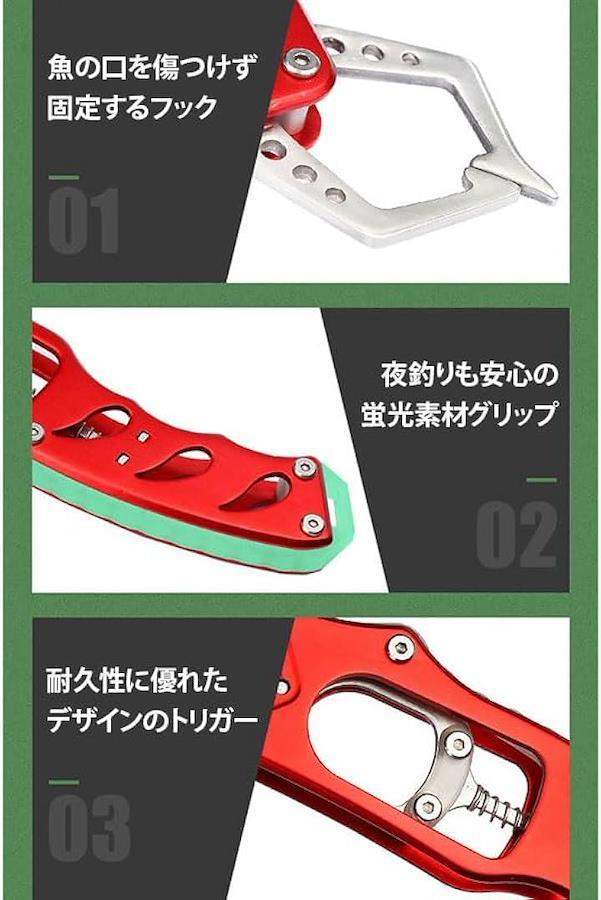 薄緑色の光が夜釣り中でもグリップの位置を示し、置き忘れ防止にも役立ちます。