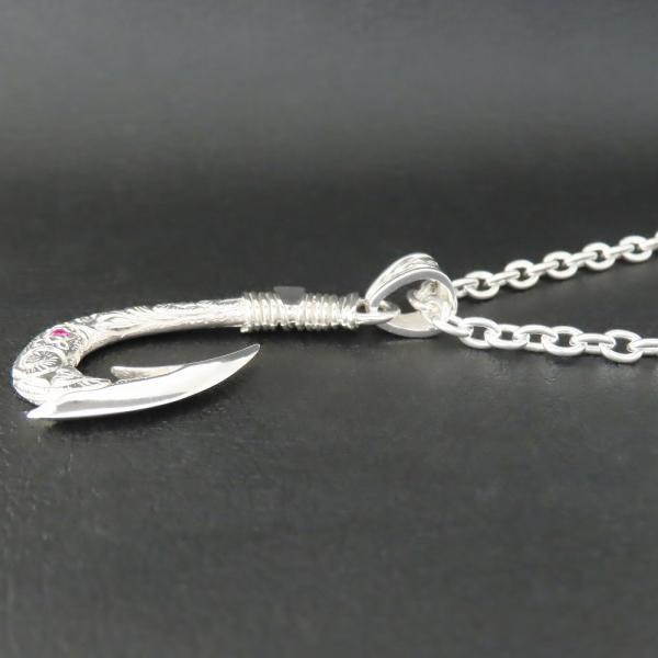 【モチーフ】 釣り針、フィッシュフック、波、スクロール、海亀、ホヌ ◆モチーフ意味 フィッシュフック(釣り針)のモチーフには、魚を釣り上げることから 「幸せを釣り上げる」。 また、魚が釣り針に掛かると逃げられないことから、「大切な人と離れない」 「幸運を逃がさない」「恋愛成就」「命を守ってくれる」と言った意味があります。 釣り針部分に彫り込んだスクロールは寄せては返す波で永遠を表しています。 ストーンが留まる、海亀(ホヌ)は海の守り神。幸運・金運を運んでくると言われています。 バチカン部分のマイレはハワイの結婚式で新郎と新婦の手をマイレのレイで結び「神聖なる結びつき」を表現します。 ◆商品名 釣り針リング(PDT-270) ◆素材 シルバー925 スターリングシルバー ◆ペンダント寸法 縦50mm×横22mm ◆ストーン 直径2.0mm 下記の中からお好みの天然石・誕生石をお付け致します。 ・ガーネット ・ロードライトガーネット ・アメジスト ・アクアマリン ・ブラックダイヤモンド ・エメラルド ・ブルームーンストーン ・ルビー ・ペリドット ・サファイア ・アイオライト ・ピンクトルマリン ・シトリン ・ブルートパーズ ・タンザナイト ・オニキス ・ラピスラズリ ・ターコイズ ◆チェーン長さ 35~60cmの中からお好みの長さをお選び下さい。 4.0mmシルバー925小豆チェーン ◆付属品 ジュエリーBOX、ショップ袋、品質保証書 *プレゼント梱包出来ます ◆実店舗 JR帯広駅より徒歩5分の場所にある2012年オープンのフラッグシップショップ。 ジュエリー工房を併設し、常駐する職人自らと打ち合わせも可能なため、修理や加工、お客様のご希望に沿ったジュエリーもお作りすることが可能です。 ◆オススメ使用シーン ・様々な贈り物に プレゼント 贈り物 誕生日 誕プレ 誕生日プレゼント バースデー バースデイ 御祝 御祝い お祝い 母の日 父の日 クリスマス クリスマスプレゼント Xmas 春夏秋冬 成人 成人式 卒業 卒業式 進学 就職 入学 金婚式 銀婚式 出産 結婚 開店 開業 定年退職 退職 移動 転勤 バレンタイン バレンタインデー バレンタインデイホワイトデー ホワイトデイ ごほうび ご褒美 御褒美 ・想いを込めて ありがとう 感謝 ごめんなさい 許して ごめんね よろしく おめでとう おめでとうございます 仲直り ・こんな方に 自分 彼女 彼氏 大切な人 大切な方 お父さん お父様 父親 親父 父 お母さん お母様 母親 母 兄弟 姉妹 子供 おばあちゃん 祖母 おじいちゃん 祖父 奥さん 妻 旦那 旦那さん 先生 生徒 職場 先輩 後輩 上司 部下 同僚 友達 友人