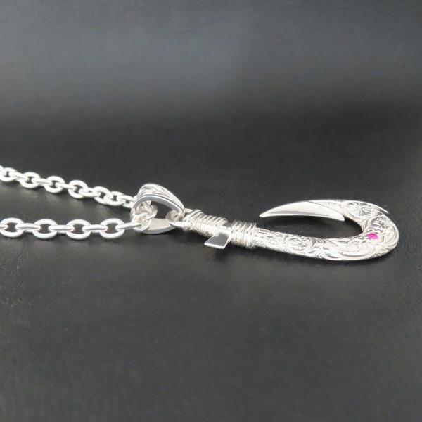 【モチーフ】 釣り針、フィッシュフック、波、スクロール、海亀、ホヌ ◆モチーフ意味 フィッシュフック(釣り針)のモチーフには、魚を釣り上げることから 「幸せを釣り上げる」。 また、魚が釣り針に掛かると逃げられないことから、「大切な人と離れない」 「幸運を逃がさない」「恋愛成就」「命を守ってくれる」と言った意味があります。 釣り針部分に彫り込んだスクロールは寄せては返す波で永遠を表しています。 ストーンが留まる、海亀(ホヌ)は海の守り神。幸運・金運を運んでくると言われています。 バチカン部分のマイレはハワイの結婚式で新郎と新婦の手をマイレのレイで結び「神聖なる結びつき」を表現します。 ◆商品名 釣り針リング(PDT-270) ◆素材 シルバー925 スターリングシルバー ◆ペンダント寸法 縦50mm×横22mm ◆ストーン 直径2.0mm 下記の中からお好みの天然石・誕生石をお付け致します。 ・ガーネット ・ロードライトガーネット ・アメジスト ・アクアマリン ・ブラックダイヤモンド ・エメラルド ・ブルームーンストーン ・ルビー ・ペリドット ・サファイア ・アイオライト ・ピンクトルマリン ・シトリン ・ブルートパーズ ・タンザナイト ・オニキス ・ラピスラズリ ・ターコイズ ◆チェーン長さ 35~60cmの中からお好みの長さをお選び下さい。 4.0mmシルバー925小豆チェーン ◆付属品 ジュエリーBOX、ショップ袋、品質保証書 *プレゼント梱包出来ます ◆実店舗 JR帯広駅より徒歩5分の場所にある2012年オープンのフラッグシップショップ。 ジュエリー工房を併設し、常駐する職人自らと打ち合わせも可能なため、修理や加工、お客様のご希望に沿ったジュエリーもお作りすることが可能です。 ◆オススメ使用シーン ・様々な贈り物に プレゼント 贈り物 誕生日 誕プレ 誕生日プレゼント バースデー バースデイ 御祝 御祝い お祝い 母の日 父の日 クリスマス クリスマスプレゼント Xmas 春夏秋冬 成人 成人式 卒業 卒業式 進学 就職 入学 金婚式 銀婚式 出産 結婚 開店 開業 定年退職 退職 移動 転勤 バレンタイン バレンタインデー バレンタインデイホワイトデー ホワイトデイ ごほうび ご褒美 御褒美 ・想いを込めて ありがとう 感謝 ごめんなさい 許して ごめんね よろしく おめでとう おめでとうございます 仲直り ・こんな方に 自分 彼女 彼氏 大切な人 大切な方 お父さん お父様 父親 親父 父 お母さん お母様 母親 母 兄弟 姉妹 子供 おばあちゃん 祖母 おじいちゃん 祖父 奥さん 妻 旦那 旦那さん 先生 生徒 職場 先輩 後輩 上司 部下 同僚 友達 友人