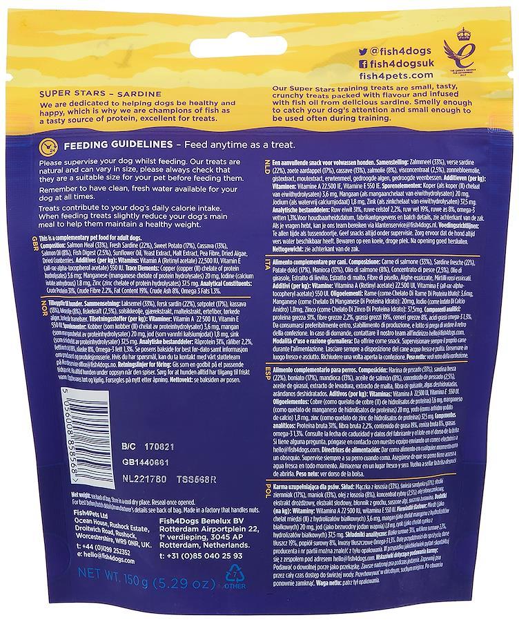 ●嗜好性が高いため、トレーニングトリーツ(訓練補助品)としての効果抜群 ●新鮮なサーモンに加え、栄養価の高いイワシを配合 ●もちろん穀物不使用、無添加無着色 ●魚の量が鮮魚を含め65%以上配合 ●嗜好性が高く良質なたんぱく質を使用