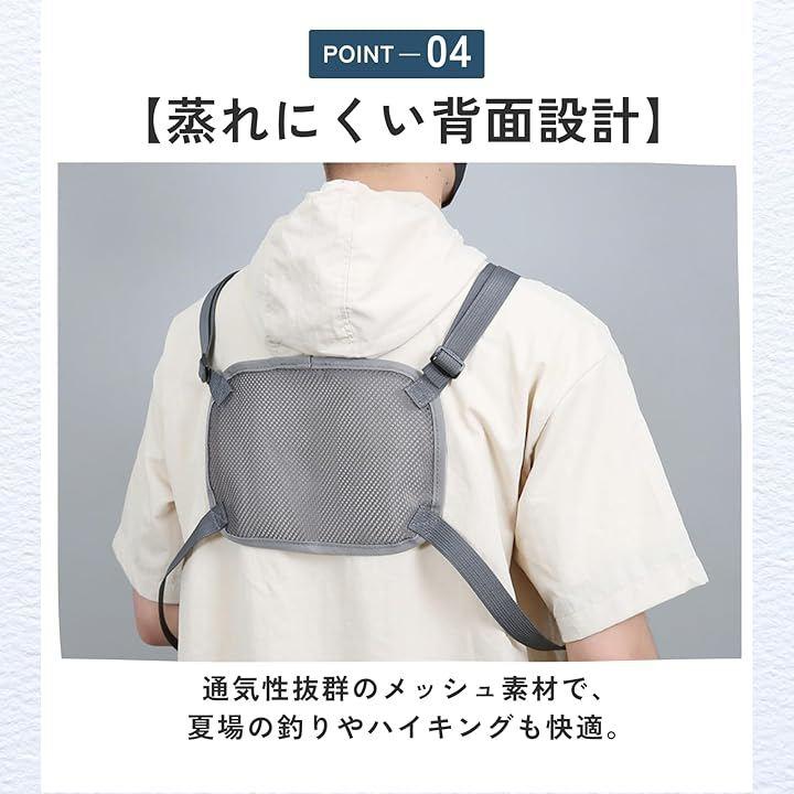 「蒸れにくい背面設計」通気性抜群のメッシュ素材で、夏場の釣りやハイキングも快適。