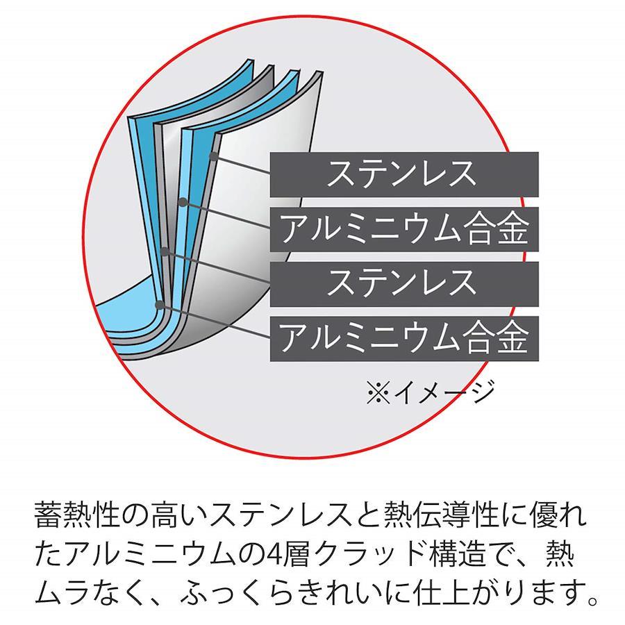 素材:本体/ステンレス鋼・アルミニウム、取っ手/ステンレス鋼、内面/フッ素コーティング、外面/ミラー仕上げ