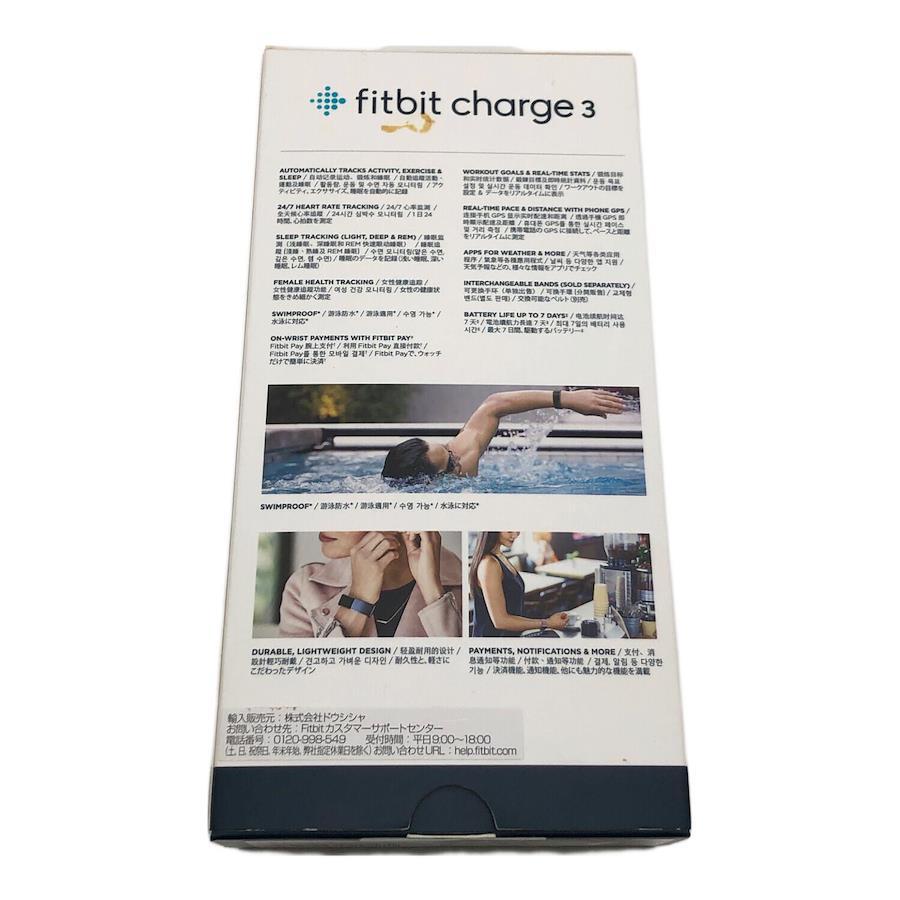 ■商品状態程度A:使用感のほぼ無い美品のお品物こちらの商品は使用感の少ない美品ですが、店頭にて展示販売を行っている為、記載に無い細かなキズ、ヨゴレなどが見受けられる場合がございます。■商品説明メーカー :Fitbitアイテム名:Charge3 フィットネストラッカー型番 :FB410RGGY-CJKサイズ:ケース径:タテ247mm×ヨコ29mmケース厚さ:12mm 重さ:31.8g動作確認:〇素材:ケース/アルミニウム ガラス/ゴリラガラス備考:リチウムポリマーバッテリー■付属品本体のみ■その他必ず、商品注文される前に店舗情報に記載している注意事項をご確認ください。