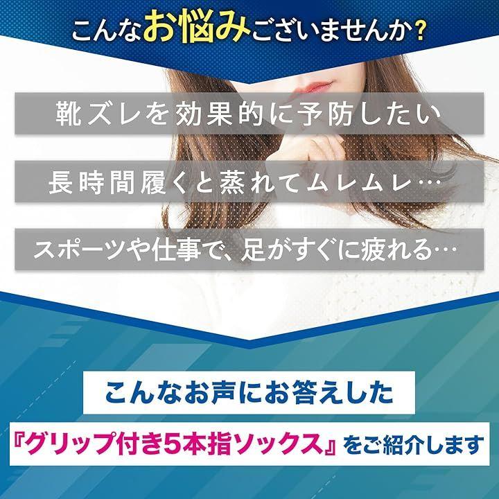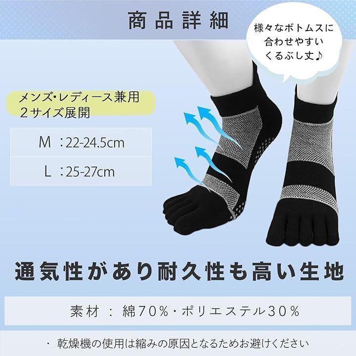 「指先独立で快適通気」五本指設計により指の間に空気が通りやすく、汗をかいてもムレにくく快適です。