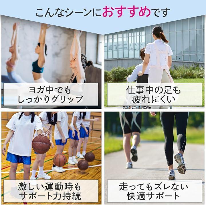 「運動時もズレにくい」滑り止め加工が施されており、激しいスポーツでも足元が安定し、ずれにくく安心です。