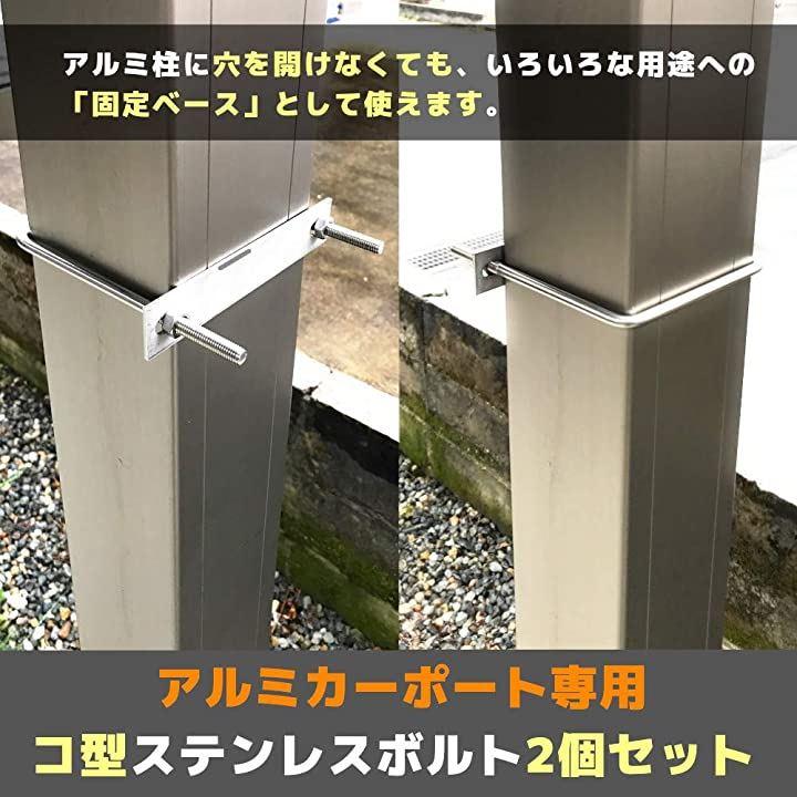 bath&bath駐車カーポート用固定金具コ型ボルトUボルトアルミ柱に穴あけ必要無し締付固定固定ベースステンレス製2個セット