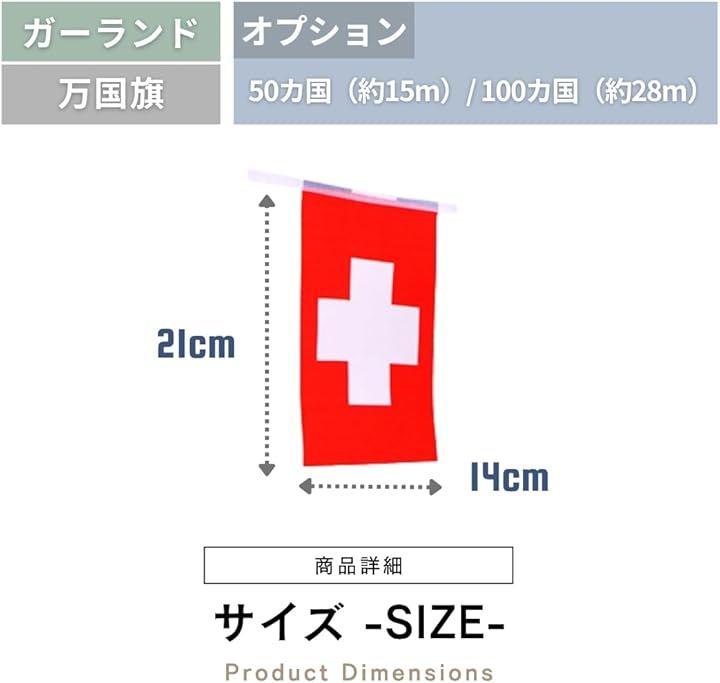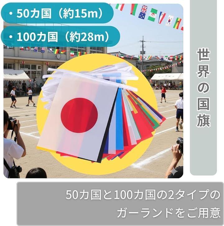 「世界の国旗」50カ国(約15m)と100カ国(約28m)の2タイプのガーランドをご用意しました。