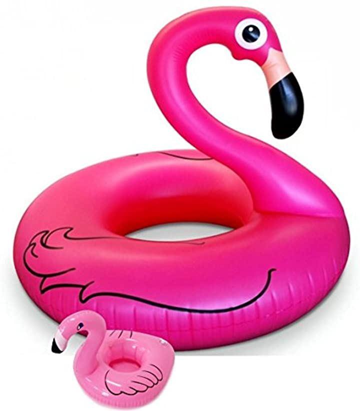 かわいいフラミンゴ型浮き輪は注目アップまちがいなし。