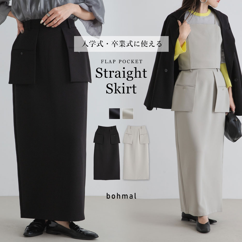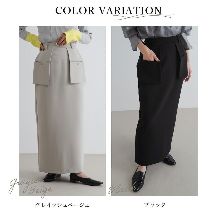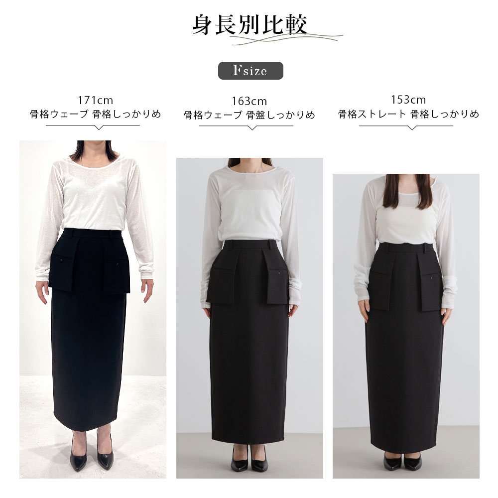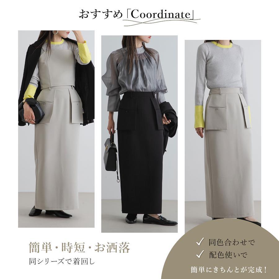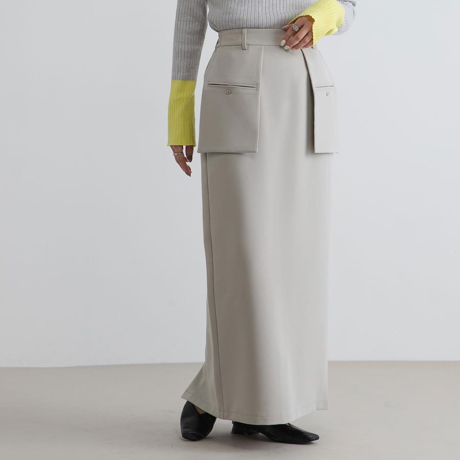腰回りをカバーしつつ一癖デザインが引き立つナロースカート