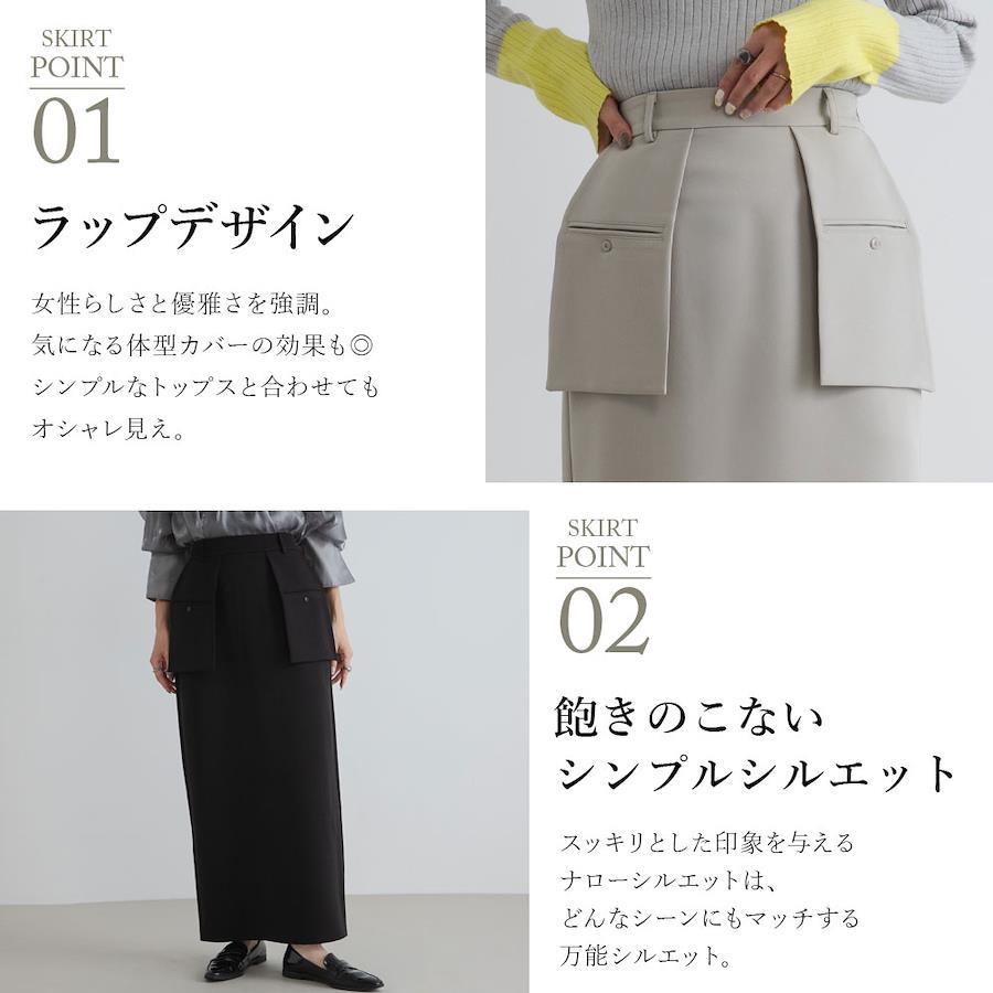 【Design】女性らしいスタイルを演出し、フィット感と動きやすさのバランスが抜群。ラップデザインがコーディネートのアクセントになるスカートです。