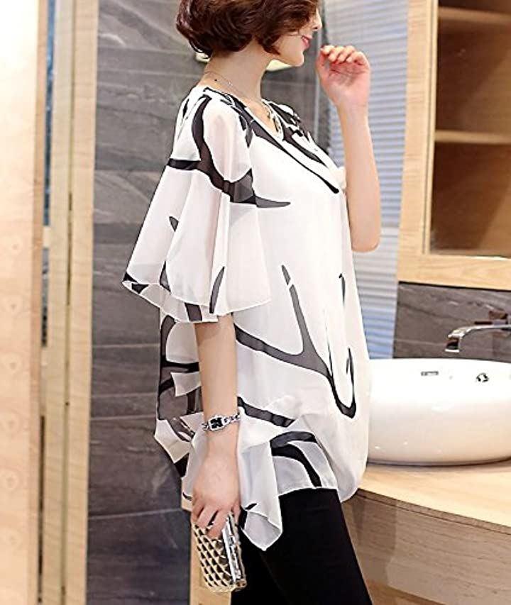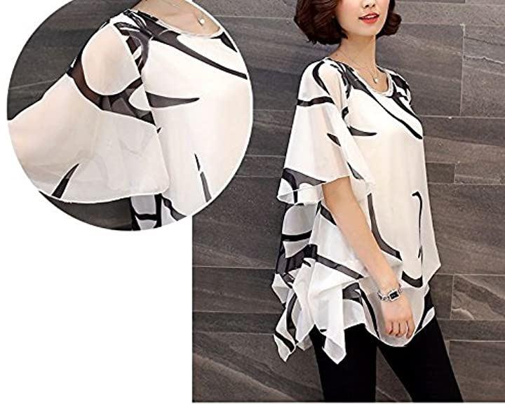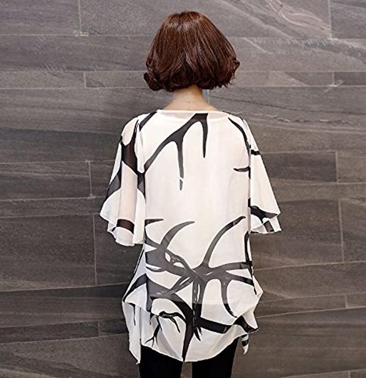 *上品な、すけ感のあるシフォン生地とポンチョ風スリーブのデザインブラウス*