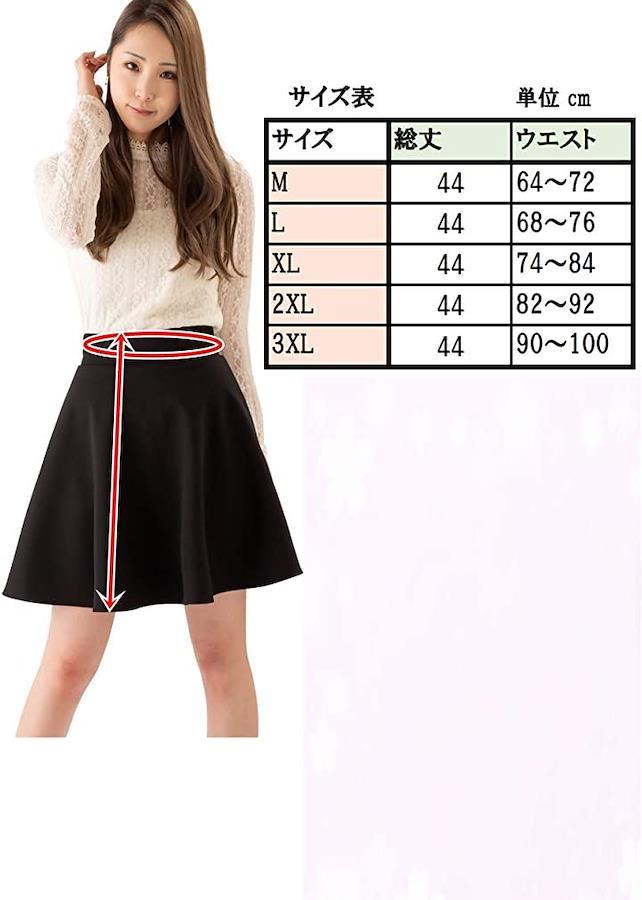 ・サイズ M~3XL M:ウエスト 64~72cm / L:ウエスト 68~76cm / XL:ウエスト 74~84cm / 2XL:ウエスト 82~92cm / 3XL:ウエスト 90~100cm スカート丈:44cm