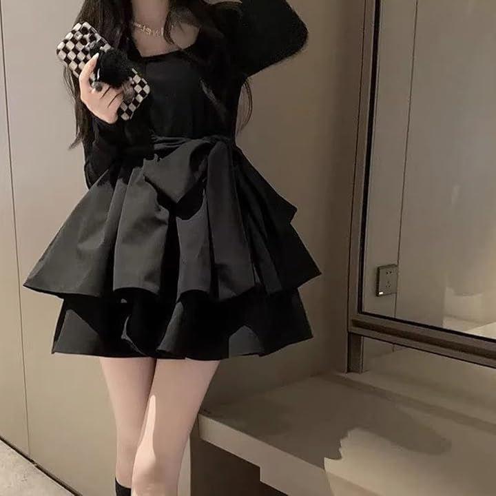 甘さとクールさを兼ね備えたゴスロリ風のミニスカートワンピースは、1枚で主役級の存在感を放ちます。