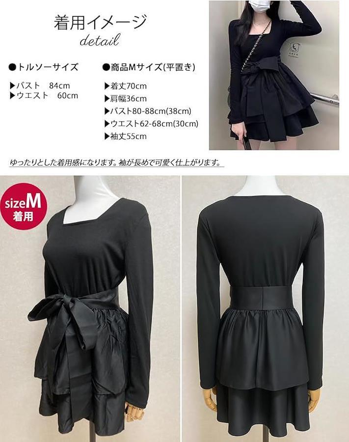 フリルとリボンのディテールがふんだんにあしらわれたデザインで、フェミニンで可愛い雰囲気を演出しつつ、黒を基調とした落ち着きのあるカラーが大人っぽい印象も与えてくれるアイテムです。