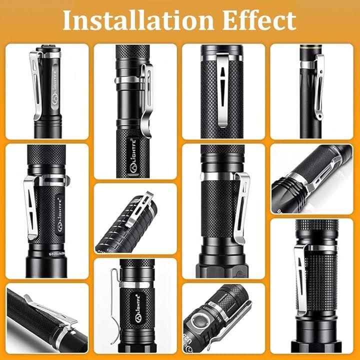 丈夫で丈夫: 懐中電灯クリップは420ステンレススチール製で、錆びたり壊れたりしにくく、質感と外観が良く、長期間使用できます。