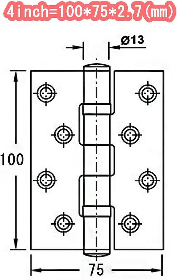 長さ100MM 広さ75MM 厚さ2.7MM (平蝶番4inch)パッキング内容:平蝶番2枚入,ねじ