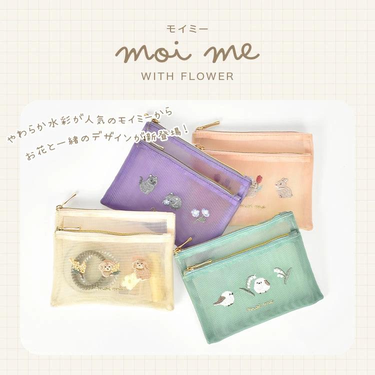 【フラットポーチ】やわらか水彩が人気のモイミーから、お花と一緒のデザインが新登場!バッグの中で散らばりやすい小物をまとめて収納できるフラットポーチです。小物を分けて入れられる2層ポケット。メッシュ生地で中身が見えて取り出しやすい&透け感が可愛くて軽いのが嬉しいポイント!子供から大人まで持ちやすいカラーバリエーションで、バッグに入れて持ち歩きやすいちょうど良いサイズ。動物好きの人へのプレゼントにもおすすめです!