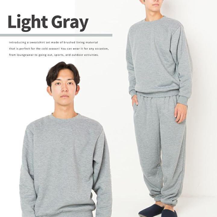 寒い季節に裏ボア素材を使用した、暖かくて動きやすいトレーナーとパンツの上下セット。