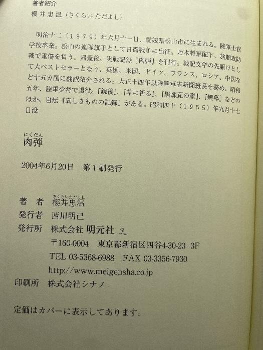 a03-251219002004015-000肉弾 明元社 桜井忠温難攻不落の要塞といわれた旅順口。ここに乃木希典大将率いる大日本帝国陸軍第三軍は、ステッセル司令官率いる強大国ロシア軍と壮烈な攻防戦を繰りひろげた。 本書は、旅順要塞をめぐる日露両軍の激戦の模様を克明に伝えるほか、惨劇を極める戦場の極限状態にあって、なお部下や戦友の安否を気づかい、家族を想う兵士達の姿を感動的に描く。9784902622027<%% SHIPPING %%>本は良好な状態です。※注意事項※■商品・状態はコンディションガイドラインに基づき、判断・出品されております。■付録等の付属品がある商品の場合、記載されていない物は『付属なし』とご理解下さい。※