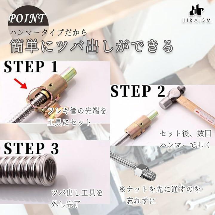 「16mm・20mmお得な2個セット」フレキ管の長さ調整が必要な際に、端にネジ山を作る事ができるハンマータイプの水道フレキ管ツバ出し工具です。