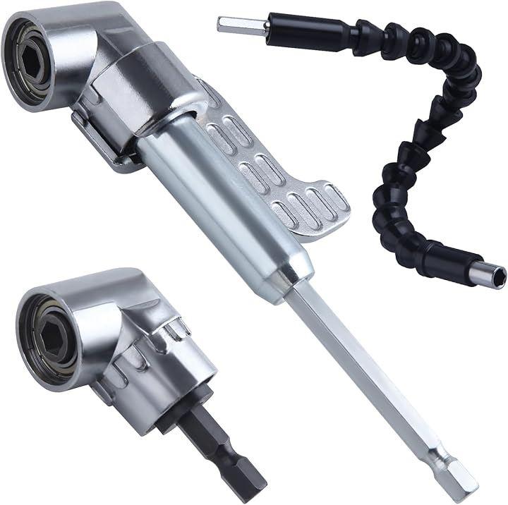 この汎用性の高いドリルアタッチメントは、直角延長ビットと柔軟な延長ビットの両方を備えているため、従来のストレートドリルではアクセスできない困難な場所に到達するのに最適です。