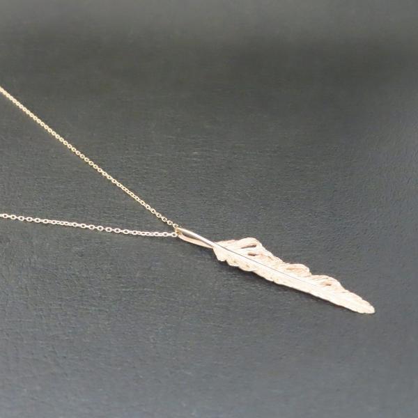 Flight feather necklace K10YG Flight feather Feather Feather Necklace Pendant K10 Yellow Gold Men Unisex Male Boyfriend Handmade Handmade Engraving Jewelry box Anniversary Christmas Birthday Present Grand Galleria Grand Galleria
