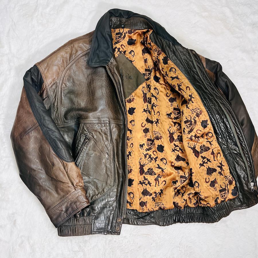 【ポイント】ラムレザー 裏地総柄