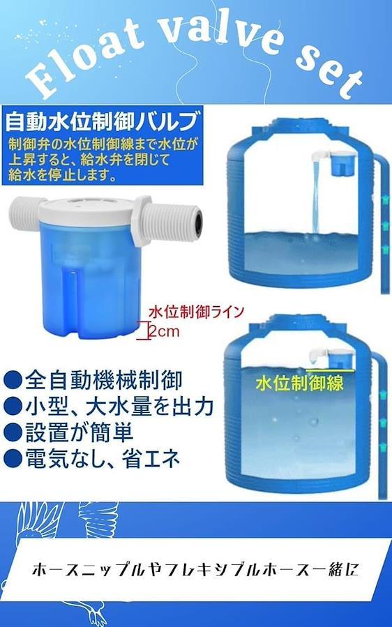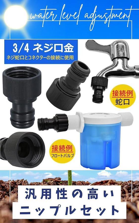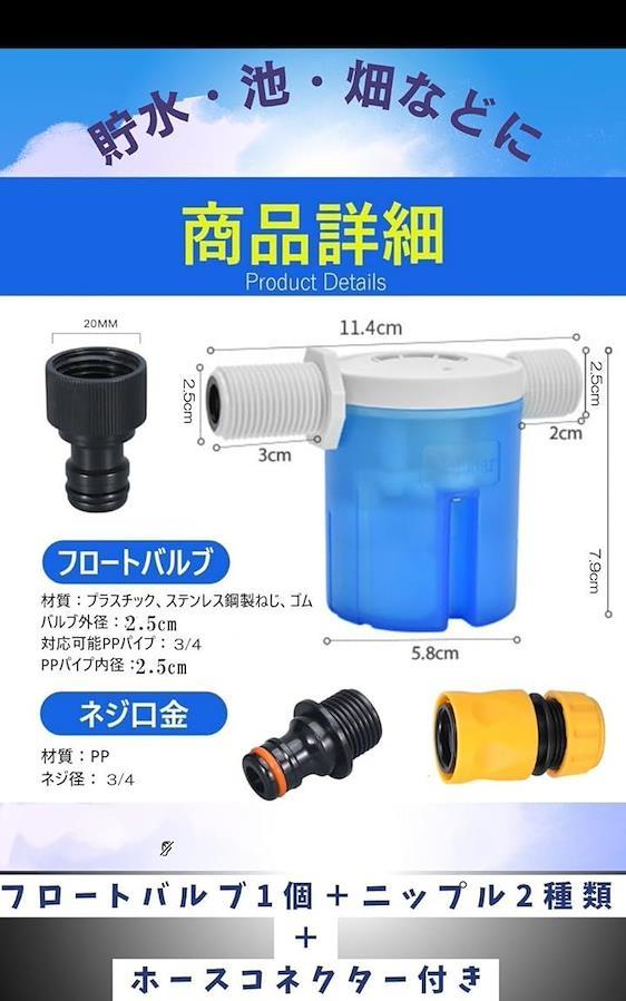 「内容」3/4 フロートバルブ 1個 + 3/4 ニップル 2種類 各1個 + ホース接続コネクター 1個 + シールテープ1個