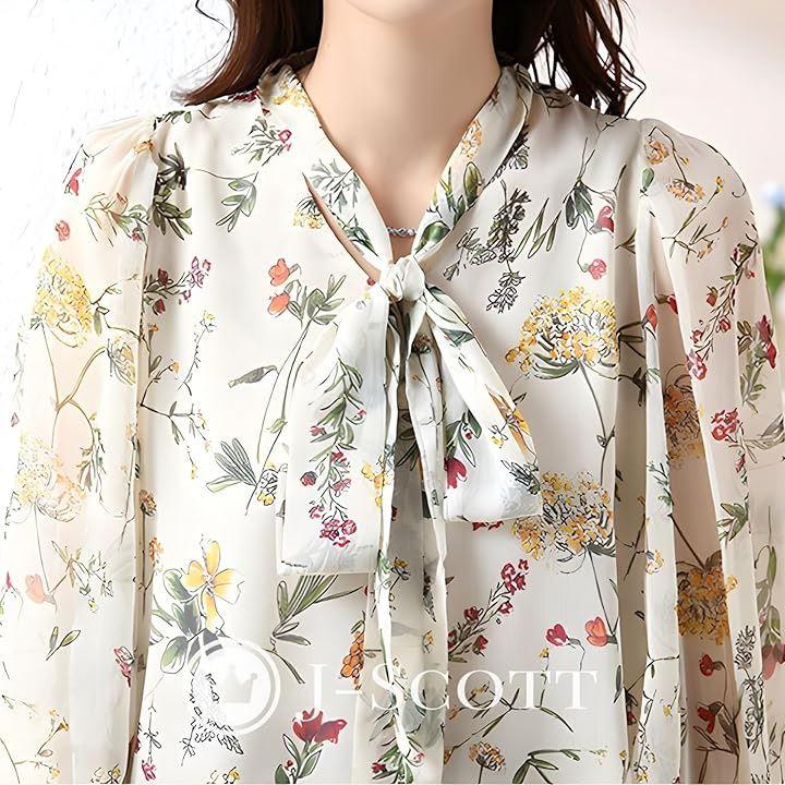 「可憐な小花柄でぐっと華やぐボウタイブラウス」 フワリと揺れるエアリーなボウタイに、みずみずしい可憐なフラワープリントが美しく、エレガントなブラウス。