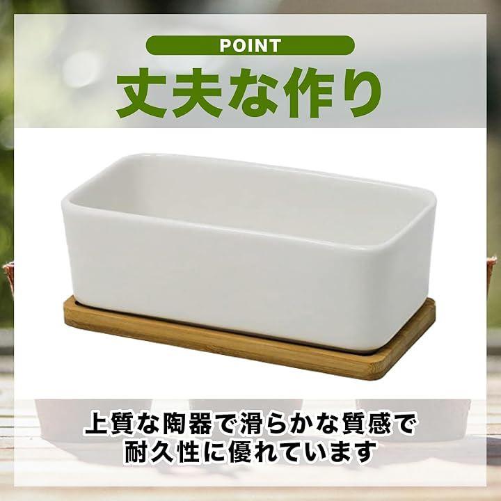「商品詳細」陶器鉢サイズ:(約)幅17x奥行8.5x高さ6cm 受け皿:(約)幅17.2x奥行8.9x高さ1.2cm材質:陶器セラミック(鉢)・竹製(受け皿)