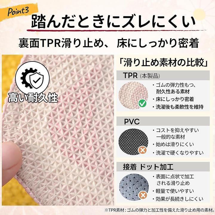 「吸水性」水分をしっかり吸収し、入浴後や洗面時の足元を快適に保ちます。