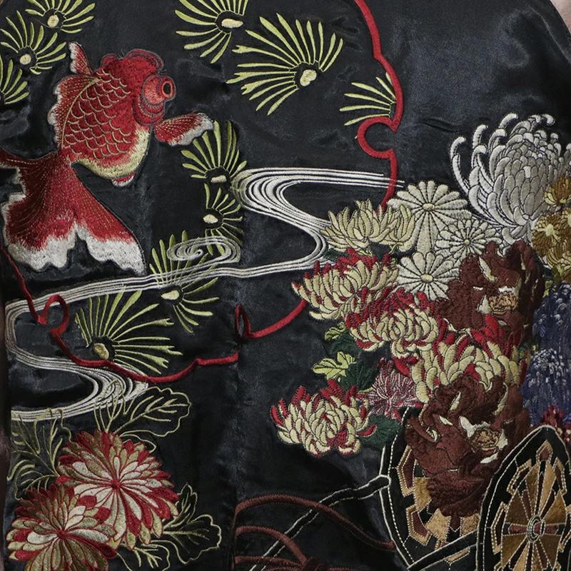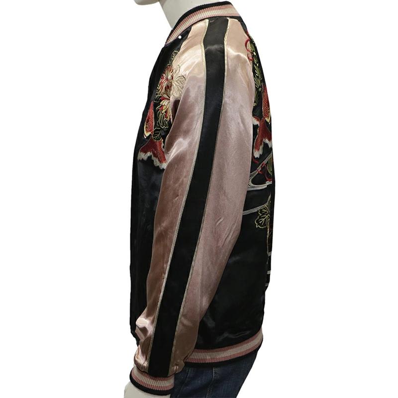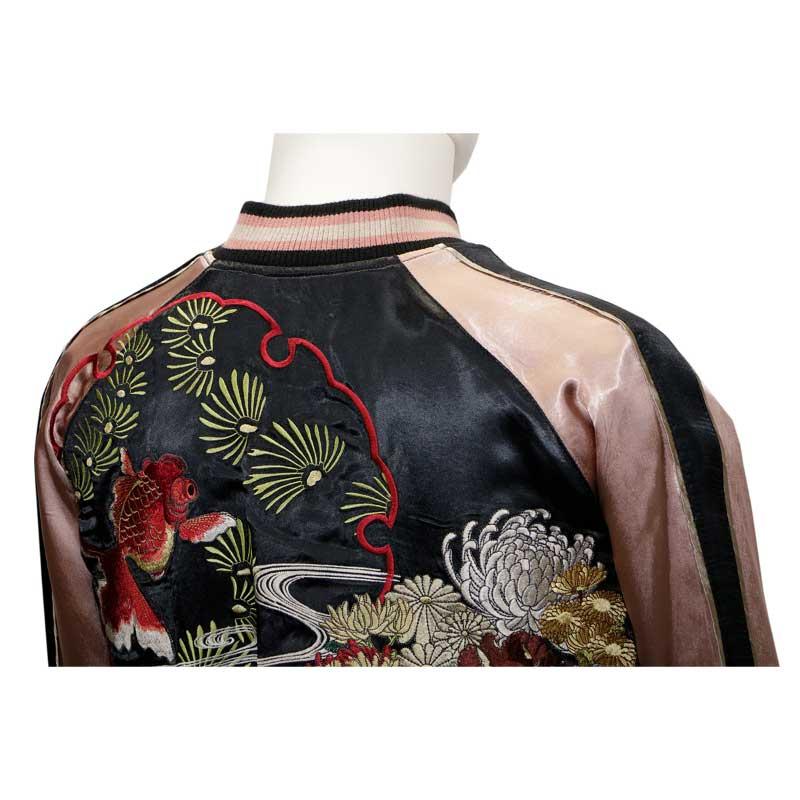 華やかなと鮮やかな袖のピンクがマッチして雅ながら優しい雰囲気のスカジャンです。