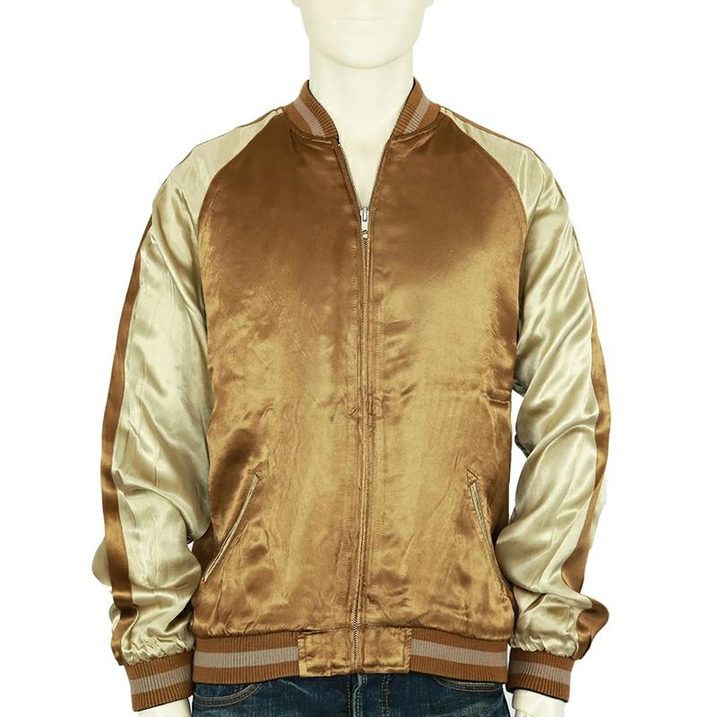 背中に2箇所にジャガード生地を叩きつけた、珍しい仕様のスカジャンです。