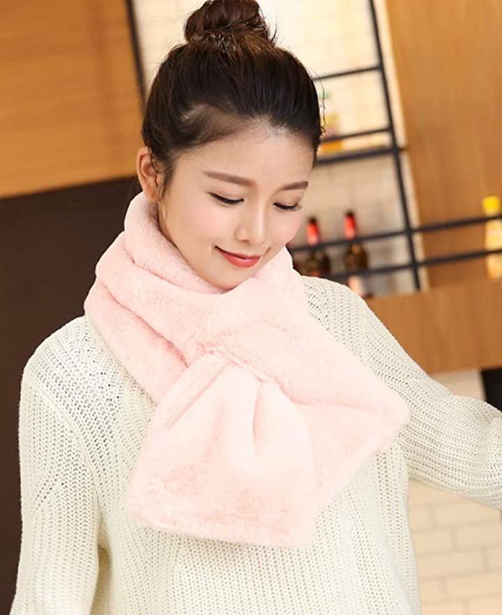 ふわふわのファーが暖かく、心地よく首元を温めてくれます。