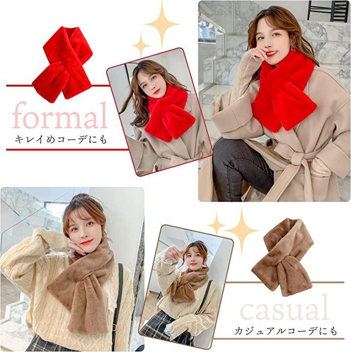 両面ファー生地なので、付け心地もよく首元を温め、見た目も暖かい印象。