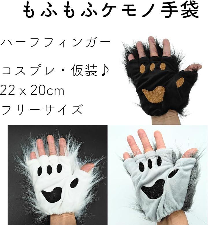 「商品仕様」素材:ポリエステル *ふわふわ、もふもふ感の素材 サイズ:男女兼用(フリーサイズ) 本体:22cmx20cm(平置きサイズ) *ハーフフィンガータイプ