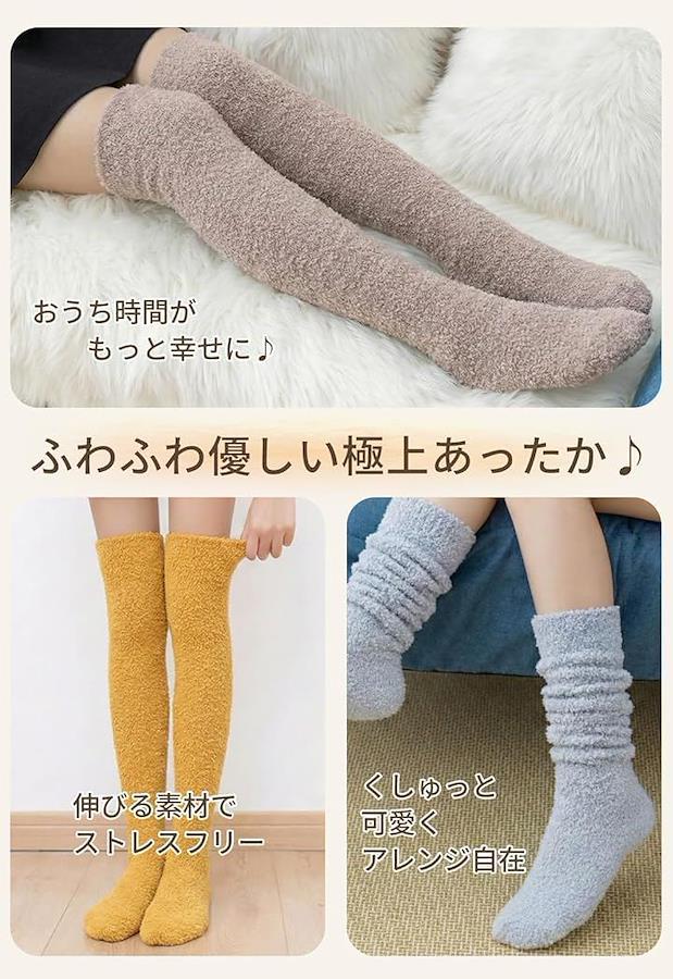 TOMOTHYの「モコモコ靴下 ロング 無地 ニーハイソックス」は、寒い季節に手放せないレディース向けのあったか靴下。