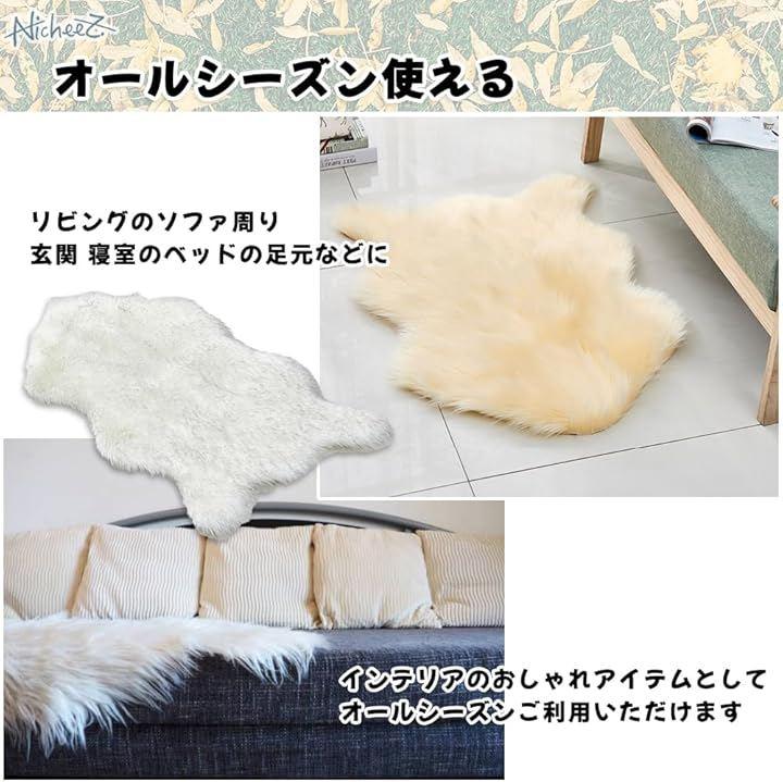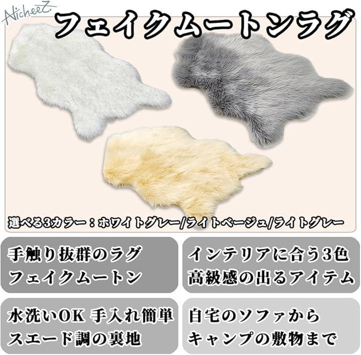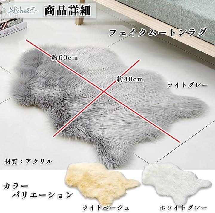「商品内容」 フェイクムートンラグ 材質:アクリル カラー:ホワイトグレー/ライトベージュ/ライトグレー サイズ:縦/約60cm 横/約40cm