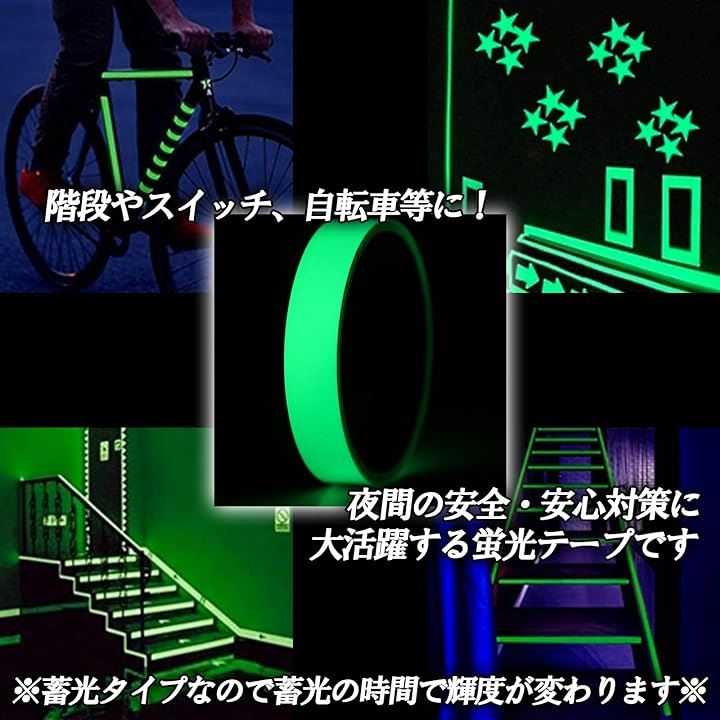 急な停電や地震などの災害時、非常時に大活躍する蓄光タイプの蛍光テープです。