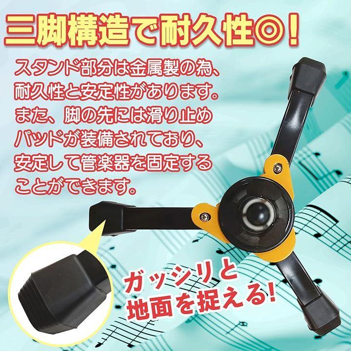 また、脚の先には滑り止め パッドが装備されており、安定して管楽器を固定することができます。