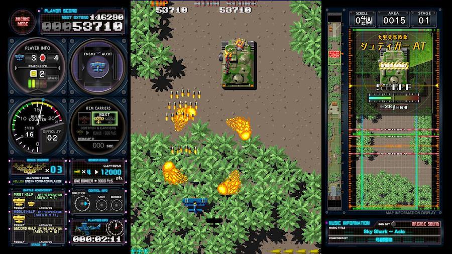 『飛翔鮫』『鮫! 鮫! 鮫! 』を完全移植+α人気作『飛翔鮫』、高難度で知られる『鮫! 鮫! 鮫! 』がセットで完全移植! 各タイトルの海外版、国内バージョン違い版、当時の家庭用移植版をそれぞれ収録した、『鮫』完全版です。タイトルごとの遊び比べはもちろん、好評の『M2ガジェット』『スーパーイージー』『アーケードチャレンジ』も勿論収録